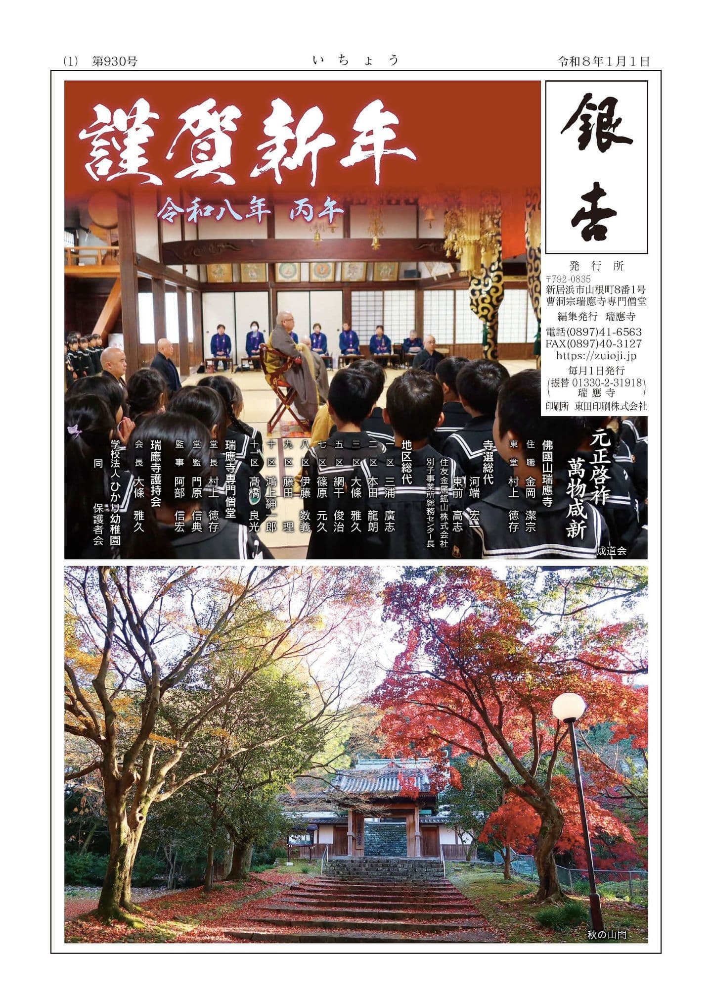 瑞應寺では、隔月で会報【銀杏】を発行しております。 会報は、檀家様、関係寺院様にお配りしておりますが、配送ご希望の方は 下記よりお問い合わせください。 お問い合わせフォーム 2026/01/01発行 930号 PDFはこちら 2025/12/01発行 929号 PDFはこちら 2025/11/01発行 928号 PDFはこちら 2025/10/01発行 927号 PDFはこちら 2025/09/01発行 926号 PDFはこちら 2025/08/01発行 925号 PDFはこちら 2025/07/01発行 924号 PDFはこちら 2025/06/01発行 923号 PDFはこちら 2025/05/01発行 922号 PDFはこちら 2025/04/01発行 921号 PDFはこちら 2025/03/01発行 920号 PDFはこちら 2025/02/01発行 919号 PDFはこちら 2025/01/01発行 918号 PDFはこちら 2024/12/01発行 917号 PDFはこちら 2024/11/01発行 916号 PDFはこちら 2024/10/01発行 915号 PDFはこちら 2024/09/01発行 914号 PDFはこちら 2024/08/01発行 913号 PDFはこちら 2024/07/01発行 912号 PDFはこちら 2024/06/01発行 911号 PDFはこちら 2024/05/01発行 910号 PDFはこちら 2024/04/01発行 909号 PDFはこちら 2024/03/01発行 908号 PDFはこちら 2024/02/01発行 907号 PDFはこちら 2024/01/01発行 906号 PDFはこちら 2023/12/01発行 905号 PDFはこちら 2023/11/01発行 904号 PDFはこちら 2023/10/01発行 903号 PDFはこちら 2023/09/01発行 902号 PDFはこちら 2023/08/01発行 901号 PDFはこちら 2023/07/01発行 900号 PDFはこちら 2023/06/01発行 899号 PDFはこちら 2023/05/01発行 898号 PDFはこちら 2023/04/01発行 897号 PDFはこちら 2023/03/01発行 896号 PDFはこちら 2023/02/01発行 895号 PDFはこちら 2023/01/01発行 894号 PDFはこちら 2022/12/01発行 893号 PDFはこちら 2022/11/01発行 892号 PDFはこちら 2022/10/01発行 891号 PDFはこちら 2022/09/01発行 890号 PDFはこちら 2022/08/01発行 889号 PDFはこちら 2022/07/01発行 888号 PDFはこちら 2022/06/01発行 887号 PDFはこちら 2022/05/01発行 886号 PDFはこちら 2022/04/01発行 885号 PDFはこちら 2022/03/01発行 884号 PDFはこちら 2022/02/01発行 883号 PDFはこちら 2022/01/01発行 882号 PDFはこちら 2021/12/01発行 881号 PDFはこちら 2021/11/01発行 880号 PDFはこちら 2021/10/01発行 879号 PDFはこちら 2021/09/01発行 878号 PDFはこちら 2021/08/01発行 877号 PDFはこちら 2021/07/01発行 876号 PDFはこちら 2021/06/01発行 875号 PDFはこちら 2021/05/01発行 874号 PDFはこちら 2021/04/01発行 873号 PDFはこちら お問い合わせはこちら ページトップへ